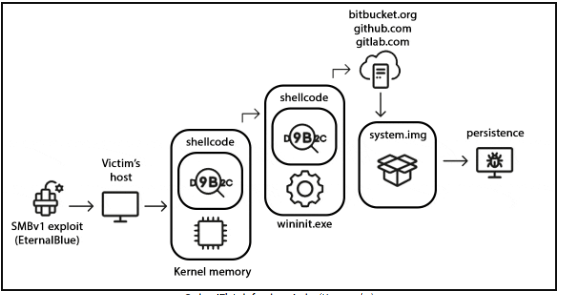 After some investigation, they found that it downloads and executes additional files like PowerShell scripts that are from legitimate hosting services like GitHub, Bitbucket, and GitLab. It came to light that the internet-exposed compromised devices were first breached using a custom EternalBlue SMBv1 exploit.