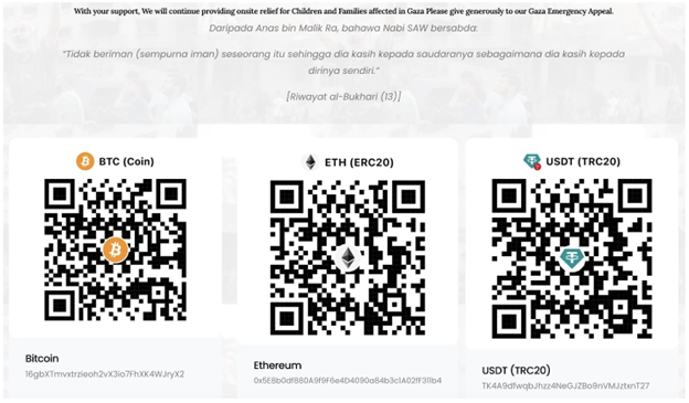 Scammers are taking advantage of the terrible events of Israeli war against Palestine by pretending to be legitimate charities and collecting cryptocurrency donations. There are several posts on social media where scammers list suspicious cryptocurrency wallet addresses to lure victims into sending them funds.