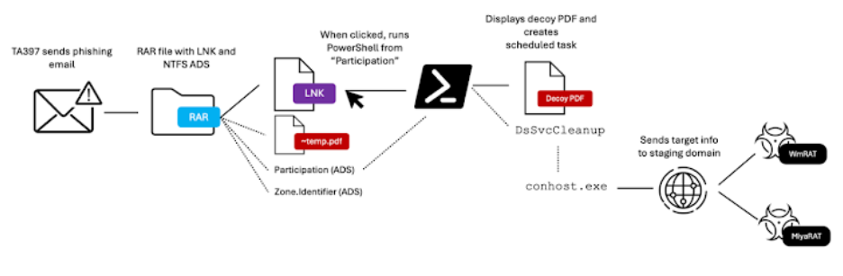 Bitter, a suspected South Asian cyber espionage threat group, sent two C++ malware families, WmRAT and MiyaRAT, to a Turkish defense sector business in November 2024. The attack chain delivered a shortcut (LNK) file that generated a scheduled task on the victim's computer to download more payloads using different data streams in a RAR package.