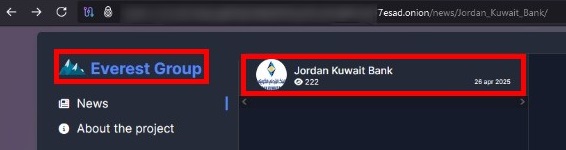 On April 26, 2025, a newly-emerged ransomware gang "Everest" has recently added the banking sector i.e. Jordan Kuwait Bank, to the victim list on its data leak website.