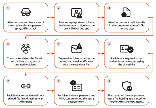 Microsoft is alerting users to cyberattack operations that take advantage of trusted file hosting services—like Dropbox, OneDrive, and SharePoint—that are frequently utilized in business settings as a means of getting around security measures.