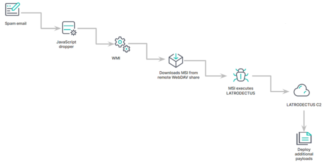 According to researchers, these campaigns employ oversized JavaScript files that leverage Windows Management Instrumentation (WMI) to invoke msiexec.exe and install a remotely hosted MSI file via a WebDAV share. Latrodectus is designed to deploy additional payloads like QakBot, DarkGate, and PikaBot enabling various post-exploitation activities.