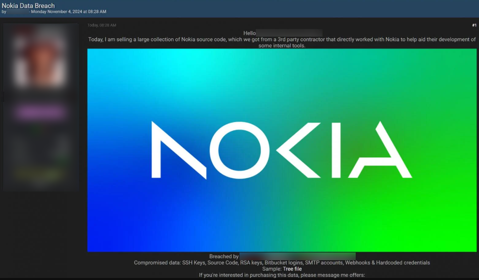 The company said that they are looking into this accusation since Nokia takes it seriously. The inquiry has so far turned up no proof that any of their data or systems are being affected. Nokia is still keeping a careful eye on the situation. This announcement follows claims made by a threat actor saying they were selling Nokia source code that had been taken from a third-party vendor's server.