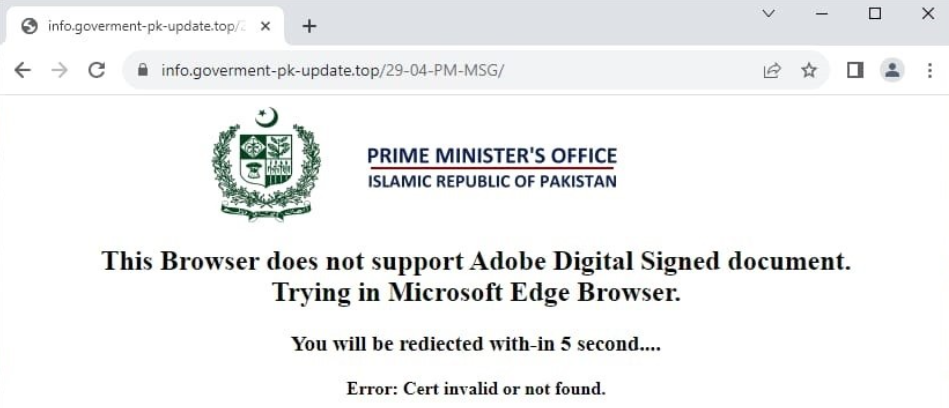 Phishing PDF documents purporting to be from the Prime Minister's Office of Pakistan and the Ministry of Foreign Affairs (MOFA) have been discovered recently, as part of a sophisticated cyber campaign carried out by threat actors thought to be part of the Sidewinder APT group.