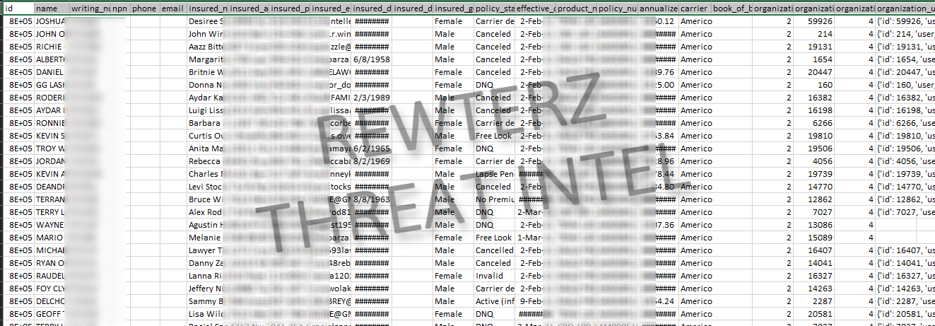 According to the claims, the exfiltrated database contains approximately 150,000 records belonging to policyholders. The compromised dataset allegedly includes personally identifiable information (PII) and policy details, such as full names, policy writing numbers, phone numbers, email addresses, physical addresses, and dates of birth. In addition, the database reportedly holds highly sensitive financial and insurance-related data, including death benefits, gender, policy status, effective dates, premium amounts, and carrier information.